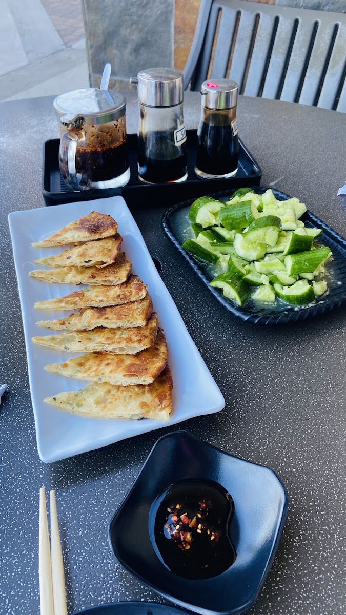 First time visit - take-out. A very personable and helpful counter server, Eason C. was an asset to the business. I ordered four separate items, enough food for at least two people. Items were well prepared and made to order fresh in twenty minutes; Green Onion Pancake, Fried Pork Dumplings (8), Shrimp Shumai (6), and Beef Roll. ALL were delicious and held up well as a take-out order. The dining area of the venue was neat, clean, and had a modern "generic" look. They also had two outdoor patio tables. They were moderately busy, and the patrons all looked well taken care of. They have an extensive menu that I can only assume they prepare equally as well as the items I enjoyed. I found the items reasonably priced and a good value. I recommend that you try them out. I don't think you'll be disappointed.